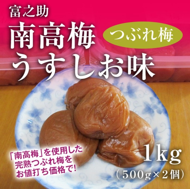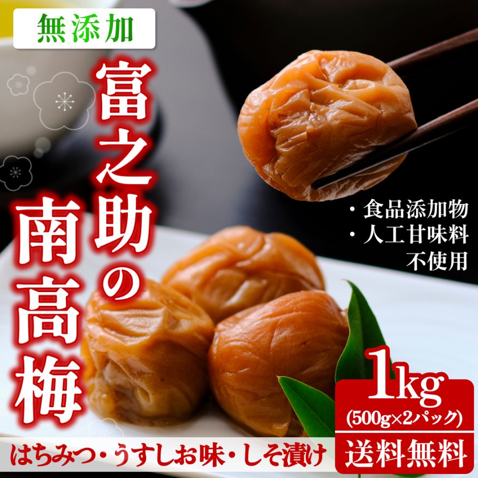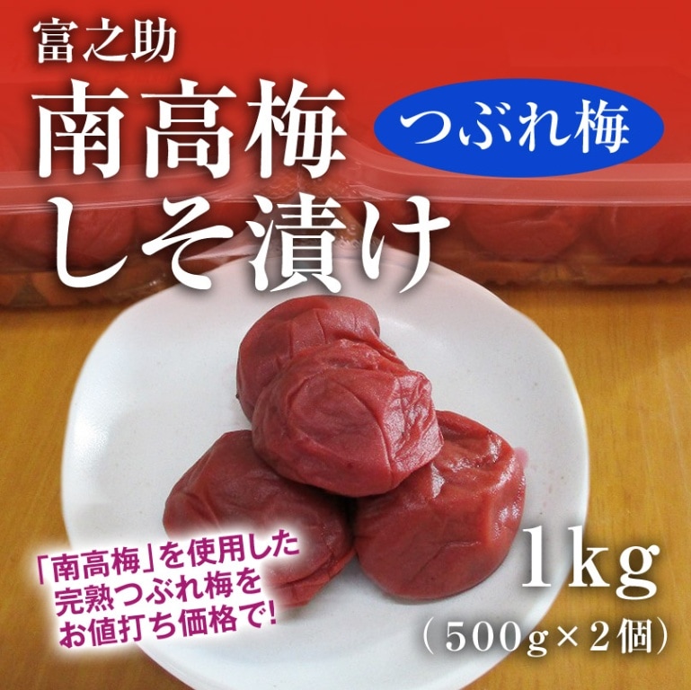 富之助の南高梅(つぶれ梅)1kg(500g×2パック)【はちみつ漬け しそ漬け うすしお味】