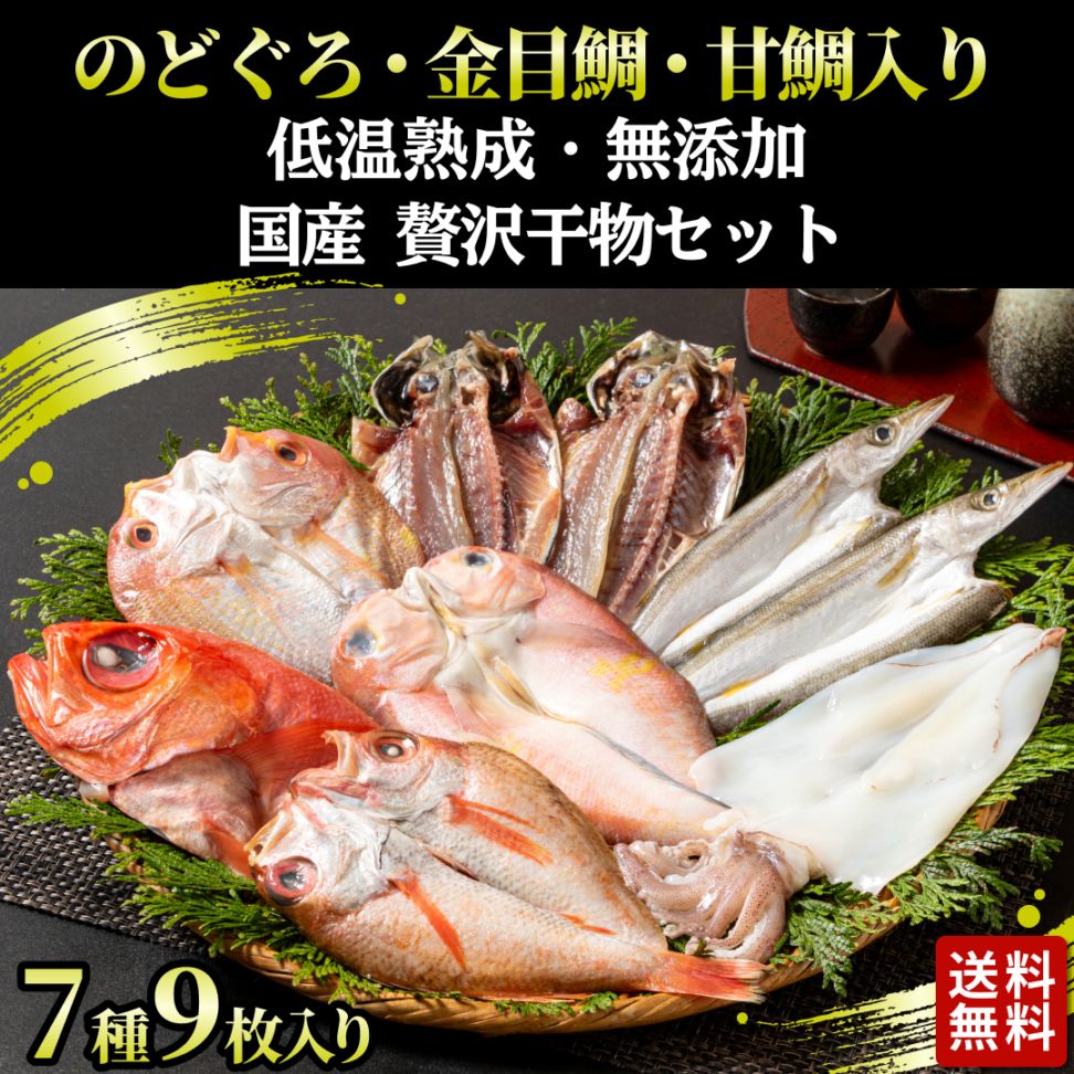 【九スポ掲載】低温熟成 無添加 贅沢干物セット 7種9枚 (のどぐろ・金目鯛・甘鯛入り)