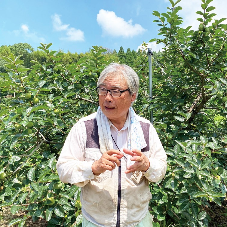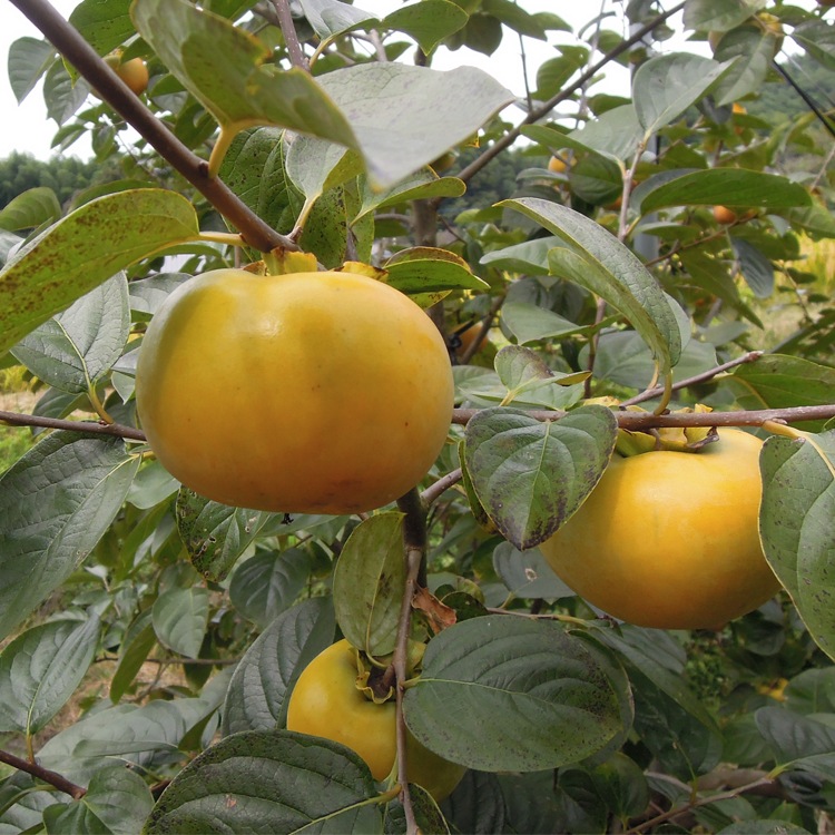 柿といえば鮮やかなオレンジ色の果皮が思い浮かびますよね。しかし、今回ご紹介する『太秋柿』は青みの残った果皮が特徴。「まだ熟れていないのでは?」と思いながら食べてみると、シャリシャリと梨のような食感と、みずみずしい甘さたっぷりの果肉の味が楽しめ、それはまさに想像を裏切る美味しさ!というのも、この『太秋柿』は甘柿の代表的な品種『富有柿』に「IIiG-16(次郎×興津15号)」を交雑して育てた甘柿の高級品種なのです。1個の重さが300g~400gと一般的な柿よりも大きく、このボリューム感も大きな魅力となっています。