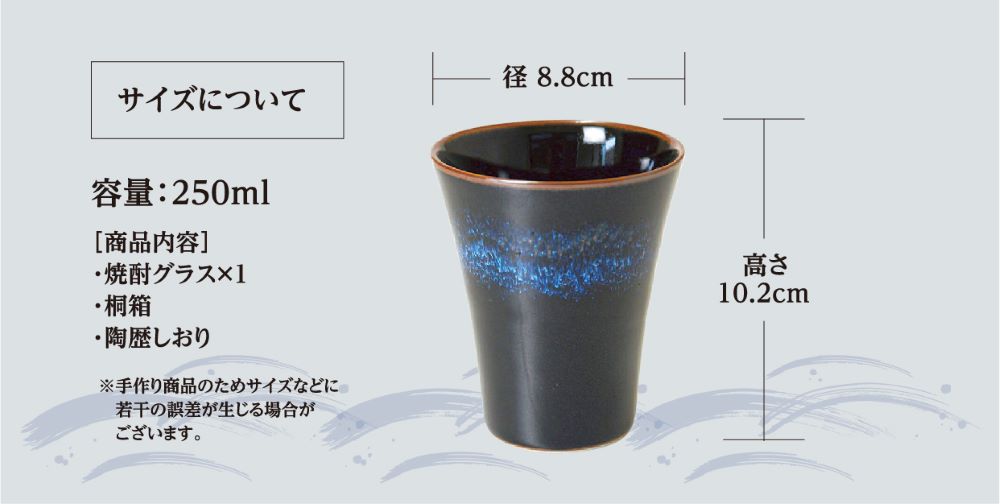 ■商品番号:IT2 ■商品内容 有田焼の名窯「真右ェ門窯」 焼酎グラス「青き明星」 桐箱・陶歴しおり ■商品サイズ 高さ:10.2cm 径:8.8cm 容量:250ml ■製造:佐賀県 ■お届け:ご注文確認後3~5営業日で発送します。 ■送料:送料無料※北海道・沖縄へのお届けは別途1,000円いただきます。