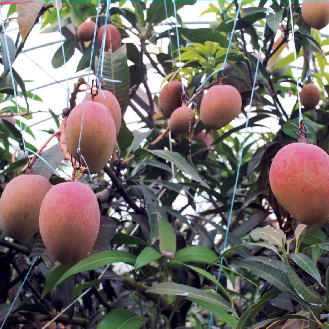 父の代から受け継ぐ樹齢20数年のマンゴーを低木に剪定し、