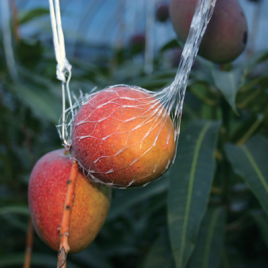 「ネット収穫法」で、実が完熟した状態で自然落下し、一番の食べ頃をマンゴー自身が教えてくれる。
