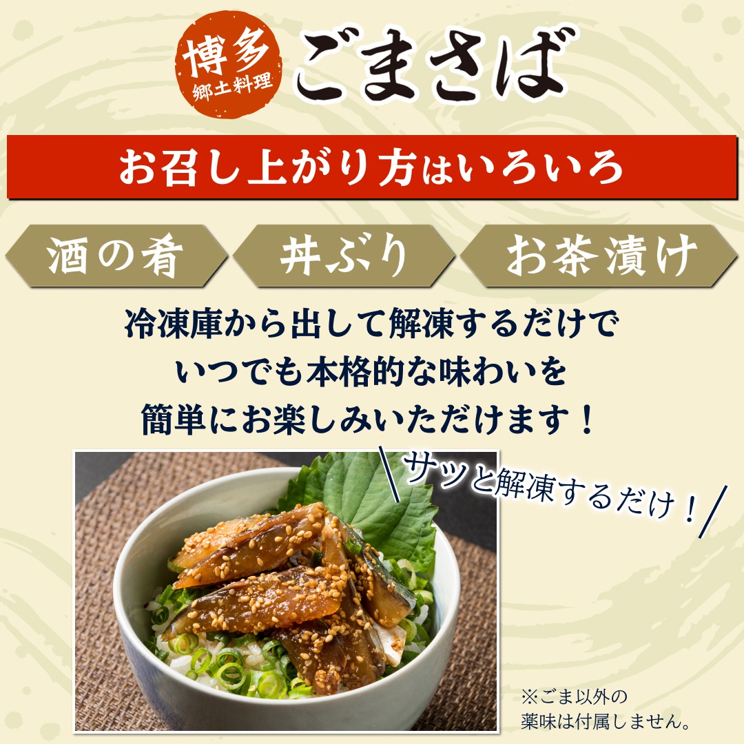 「酒の肴」としてじっくり味わうもよし、熱々のご飯に乗せて「ごまさば丼」に、また〆の「お茶漬け」としていただくのも相性抜群でオススメ。