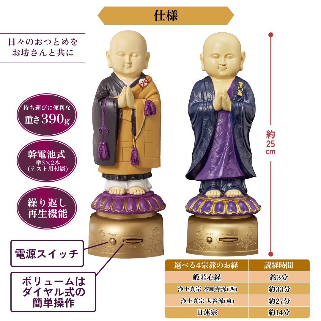 いつでもどこでも心行くまで共に読経をしてくれるお坊さん人形。