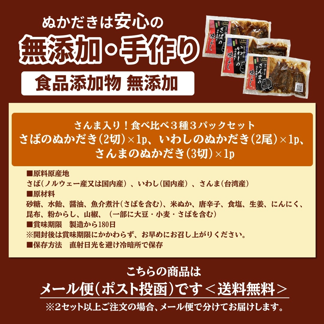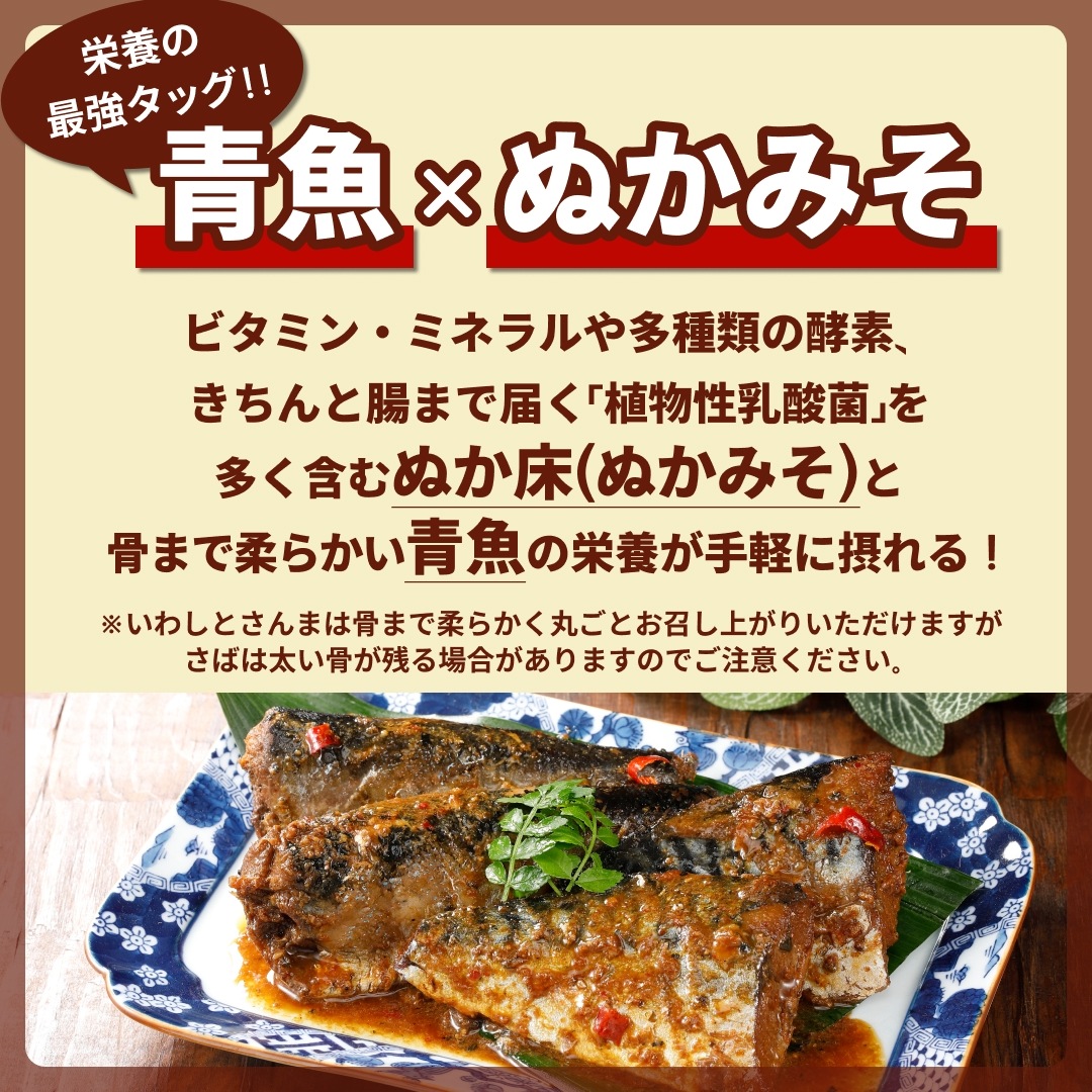 ■商品内容:さばのぬかだき(2切)×1、いわしのぬかだき(2尾)×1、さんまのぬかだき(3切)×1