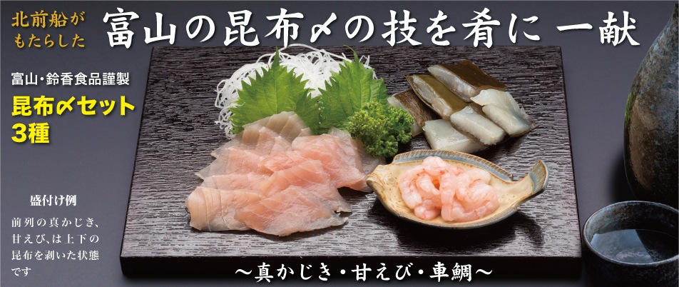 日本海産の【甘えび】を昆布で締めることで、一段と旨味を凝縮し、まったりとした別物に仕上がりました。 昆布は下に真昆布を敷き、上面には白板昆布ではさむことで素材の味をじっくり味わって頂けます。