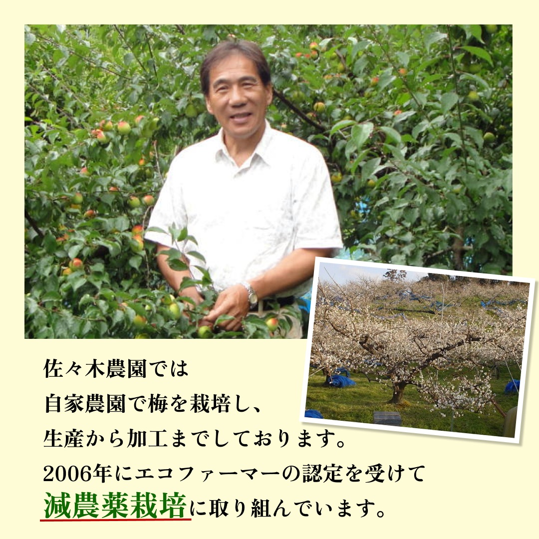 梅の里、和歌山県日高郡みなべ町で大正十年から続く、「佐々木農園」こだわりの逸品。「富之助の南高梅」は梅本来の味が楽しめる自慢の梅干しです。