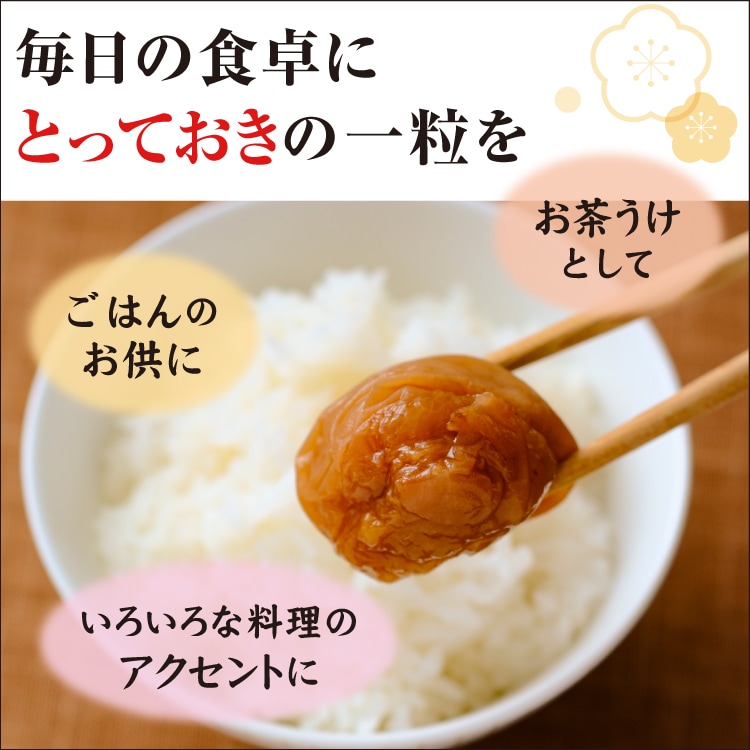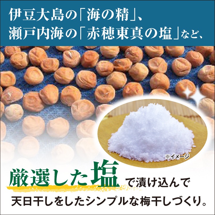 ふっくらと肉厚でジューシーな「紀州産南高梅」の特性を活かしながら、自然な梅干の風味に仕上げた「富之助の南高梅 うす塩味梅」。梅本来の味を残しながら塩分は9.4%と控えめ。しかも食品添加物不使用。食べた後すっきりとした爽やかさがあります。