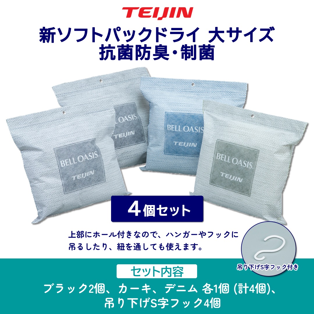 ■セット内容:4個セット(ブラック×2、カーキ×1、デニム×1)、吊り下げS字フック4個