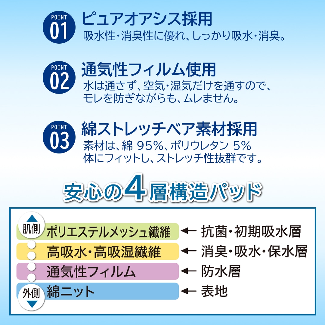 トイレ後にちょいモレしても、内側の吸収パッドがしっかり吸収。